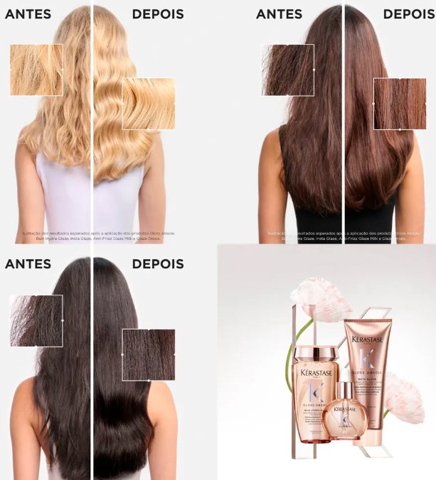 O Condicionador Kérastase Gloss Absolu Insta Glaze Fondant 250ml proporciona aos cabelos leveza, brilho e suavidade, com aparência luminosa e bem cuidada. Auxilia na distribuição da hidratação pelos fios, deixando a superfície mais uniforme e facilitando o pentear sem pesar.