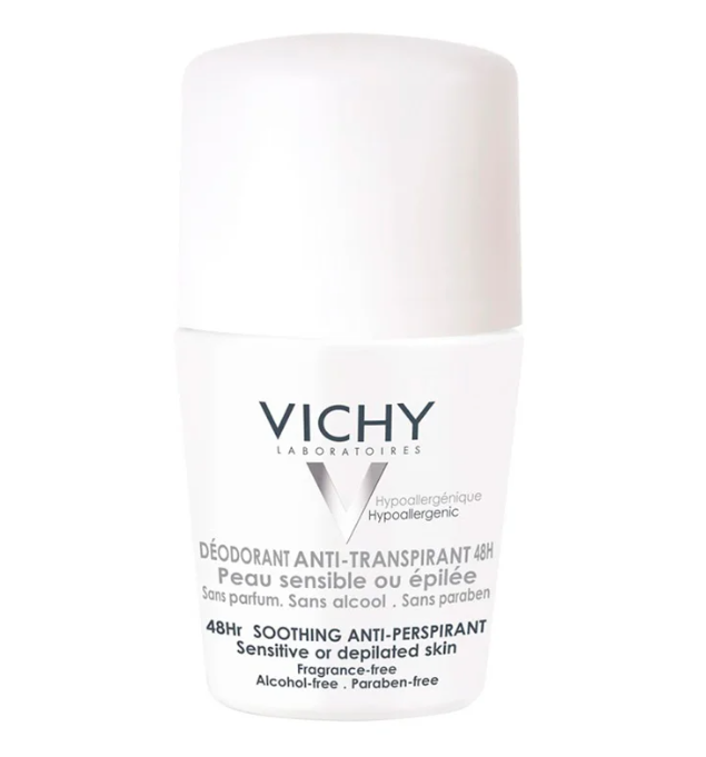 O Desodorante Antitranspirante Roll-On Vichy para Peles Sensíveis ou Depiladas oferece proteção eficaz por até 48 horas, mantendo a pele fresca e confortável. Sua textura leve e de rápida absorção foi desenvolvida para minimizar irritações, sendo ideal para quem possui sensibilidade ou acabou de depilar a região. Ajuda a controlar o suor e o odor sem agredir a pele, proporcionando sensação duradoura de cuidado.
