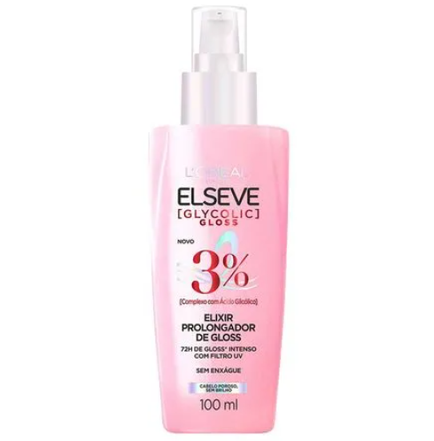 Sérum capilar Elseve Glycolic Gloss 100ml O Sérum Capilar Elseve Glycolic Gloss é um finalizador inovador desenvolvido para proporcionar brilho intenso e efeito gloss imediato aos cabelos. Sua fórmula avançada, enriquecida com ácido glicólico, atua diretamente na fibra capilar, alinhando as cutículas e promovendo uma superfície mais uniforme, refletindo melhor a luz e garantindo um aspecto saudável e luminoso. Ideal para todos os tipos de cabelo, especialmente os opacos, sem vida ou com frizz, o sérum oferece um acabamento leve, sem pesar os fios, além de proteção contra agressões externas do dia a dia. Benefícios: Proporciona brilho espelhado instantâneo Reduz o frizz e controla fios rebeldes Alinha e sela as cutículas capilares Textura leve, não oleosa e de rápida absorção Deixa os cabelos macios e com toque sedoso Auxilia na proteção contra danos externos Indicado para todos os tipos de cabelo Modo de usar: Aplique de 1 a 2 pumps do sérum nas mãos e distribua uniformemente no comprimento e pontas dos cabelos secos ou úmidos. Evite a raiz. Pode ser utilizado como finalizador após a escova ou como retoque ao longo do dia para intensificar o brilho e controlar o frizz. Não enxaguar.